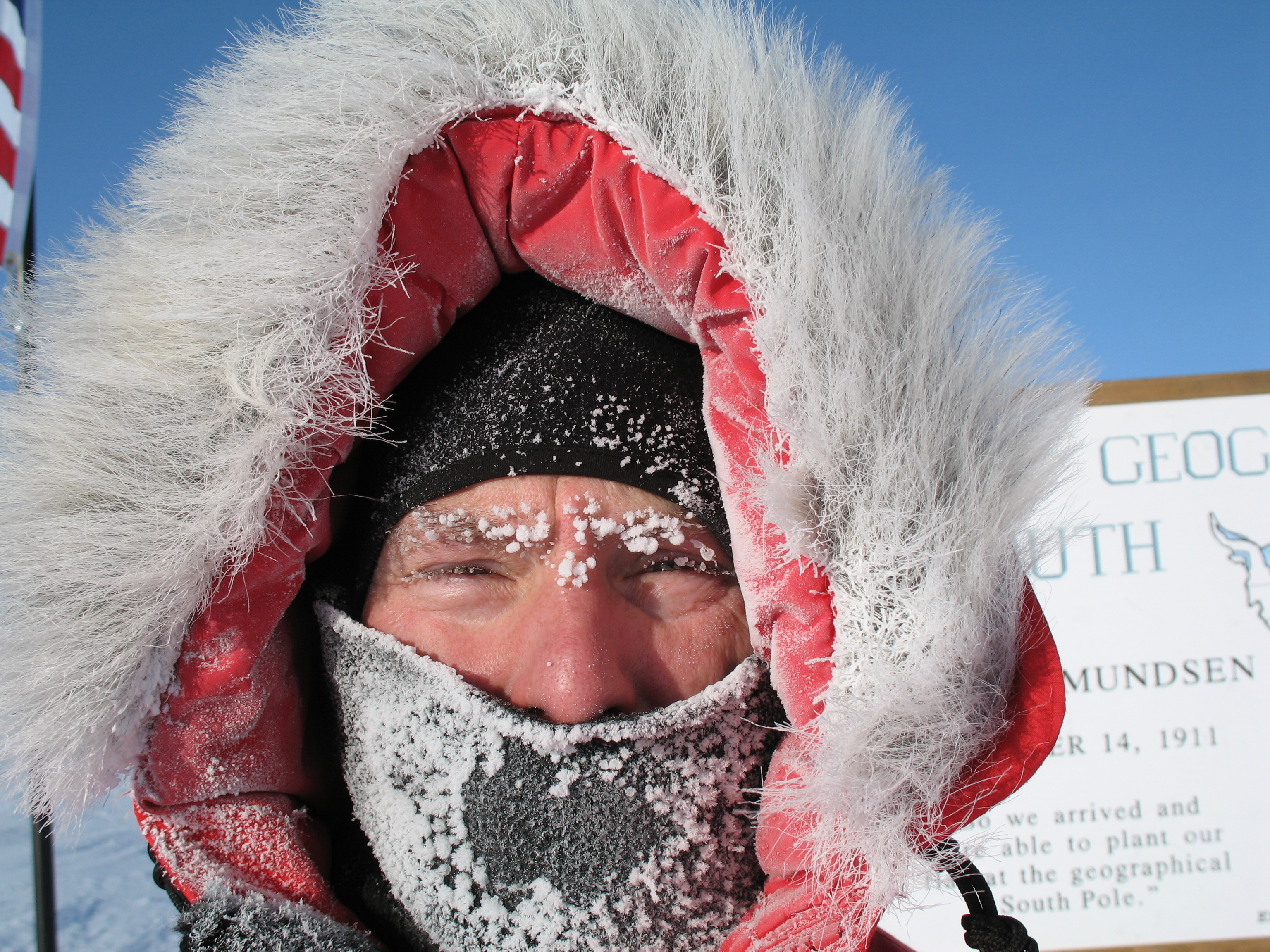 CRREL's George Blaisdell at the Amundsen-Scott South Pole Station during a “balmy” -35 degrees Fahrenheit mid-summer day. Blaisdell’s work in the Antarctic and other extreme cold regions recently earned him admittance to The Explorers Club.
